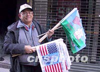 紐約世貿(mào)大樓廢墟前小販?zhǔn)燮,向“九一一”事件救難現(xiàn)場(chǎng)的英雄們致敬,也預(yù)祝美國(guó)民眾有個(gè)祥和愉快的圣誕節(jié)。中新社記者 徐德金 攝