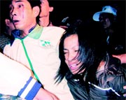 圖文:臺(tái)灣民進(jìn)黨造勢(shì)會(huì)發(fā)生內(nèi)訌 數(shù)百人互毆 2001年11月27日 09:04 ![]() 黃正男女兒黃露慧被打傷,其后男子眼角出血。(臺(tái)灣聯(lián)合報(bào)圖) 中新網(wǎng)香港11月27日消息:臺(tái)北訊,臺(tái)灣民進(jìn)黨昨晚在嘉義舉行的一場(chǎng)選前造勢(shì)會(huì),發(fā)生民進(jìn)黨嚴(yán)重內(nèi)訌事件,數(shù)百人先后兩度發(fā)生沖突,互相毆打造成多人受傷。 由于民進(jìn)黨“立委”候選人蔡同榮在昨天的晚會(huì)上邀請(qǐng)陳水扁站臺(tái)造勢(shì),同黨籍嘉義“市長(zhǎng)”候選人黃正男的支持者認(rèn)為未獲通知,有不被尊重的感覺(jué),遂在造勢(shì)場(chǎng)合上,一路追打蔡同榮。蔡同榮的小腿因此受輕傷。 這場(chǎng)沖突前后發(fā)生兩次,第一次在晚間8時(shí)陳水扁進(jìn)場(chǎng)時(shí),黃正男的支持者為了一問(wèn)究竟,當(dāng)場(chǎng)追打蔡同榮。第二次在陳水扁離去時(shí),場(chǎng)內(nèi)再次打起來(lái)。 在喊打聲中,一陣拳打腳踢,黃正男的女兒黃露慧也被打傷。 現(xiàn)場(chǎng)消息指,參與互毆者達(dá)三四百人之眾。 陳水扁致辭時(shí),黃正男的支持者在臺(tái)下特別以汽笛制造聲響抗議,陳水扁在臺(tái)上強(qiáng)調(diào)這場(chǎng)造勢(shì)晚會(huì)是為蔡同榮造勢(shì),請(qǐng)大家保持“理性及風(fēng)度”。 陳水扁在臺(tái)上說(shuō)話間,黃正男不顧安全人員引導(dǎo),強(qiáng)行走上演講臺(tái)左邊,遭安全人員擋在講臺(tái)樓梯旁。陳水扁在臺(tái)上大聲疾呼,黃正男表情頗為無(wú)奈,只好自行走下講臺(tái)并繞到講臺(tái)前面,但終被安全人員引導(dǎo)離開(kāi)。 陳水扁在晚上8時(shí)45分結(jié)束演講,由安全人員護(hù)衛(wèi)搭車離開(kāi),部分在場(chǎng)民眾見(jiàn)狀,又朝車隊(duì)方向追逐,這時(shí)有人阻擋、有人吶喊,場(chǎng)面相當(dāng)混亂。 據(jù)指出,這場(chǎng)沖突的由來(lái)并不突然,嘉義“市長(zhǎng)”選舉幾場(chǎng)造勢(shì)場(chǎng)合所引發(fā)的驚爆點(diǎn),黃正男擁有民進(jìn)黨提名的身分,但在幾次造勢(shì)場(chǎng)合中,泛綠陣營(yíng)支持無(wú)黨籍“市長(zhǎng)”候選人陳麗貞的傳言甚囂塵上,黃正男則被指為陳水扁“棄保”的對(duì)象,終于引發(fā)黃正男的支持者不滿。 尤其在24日晚,陳水扁的老師、臺(tái)大教授李鴻禧在嘉義為陳麗貞站臺(tái)。當(dāng)時(shí)李鴻禧強(qiáng)調(diào),民進(jìn)黨推出的“市長(zhǎng)”候選人根本“毫無(wú)勝算”,他自稱身為阿扁的老師,當(dāng)然知道陳水扁支持的是陳麗貞。 |