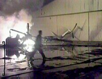 圖:以發(fā)動對巴勒斯坦的報復(fù)行動 2001年12月04日 15:55 ![]() 以色列三日向加沙地區(qū)發(fā)射十四枚導(dǎo)彈,對此前以境內(nèi)發(fā)生的一連串爆炸事件進行報復(fù),巴勒斯坦民族權(quán)力機構(gòu)主席阿拉法特的住所、辦公室及兩架直升機在襲擊中被摧毀。圖為消防人員在被摧毀的直升機前滅火。 |