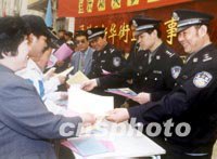 圖:北京警方向市民發(fā)放嚴(yán)打宣傳材料 2001年12月05日 15:19 ![]() 北京警方日前在街頭向市民發(fā)放嚴(yán)打宣傳材料,以取得百姓對(duì)嚴(yán)打整治斗爭的支持。中新社圖 黃然 攝 |
