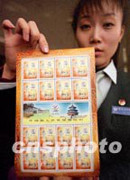 圖:國家郵政局11日發(fā)行中國入世紀念郵票 2001年12月10日 17:21 ![]() 國家郵政局將于十一日發(fā)行中國入世紀念郵票一枚,面值0.8元人民幣。中新社記者 史利 攝 |