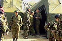 圖:150名國際維和士兵抵達(dá)喀布爾 2002年01月03日 16:33 ![]() 大約150名國際維和部隊士兵2日已抵達(dá)阿富汗首都喀布爾,其他部隊正源源不斷往這里進(jìn)發(fā)。在這150人的先遣部隊中,125人屬于英國軍隊,其中有7名女兵;其他25人則分別來自德國、法國、意大利等歐洲國家。國際維和部隊的總部就設(shè)在喀布爾市區(qū)美國大使館附近。中新社圖 |