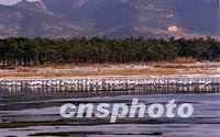 圖:中國“天鵝湖”遠眺 2002年01月13日 10:03 ![]() 山東省榮城今年又從北方飛來大批過冬的天鵝,它們雪白的英姿在湖光山水間形成中國的“天鵝湖”。中新社圖 李平 攝 |