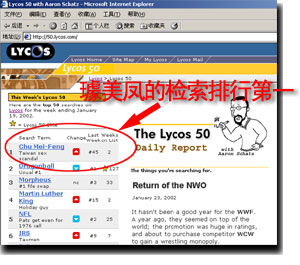 圖文:璩美鳳名字登上知名網(wǎng)絡(luò)搜索排行榜首 2002年01月24日 12:46 ![]() 璩美鳳(Chu Mei-feng)的名字在Lycos熱門檢索詞的排行中高居榜首。 中新網(wǎng)香港1月24日消息:臺(tái)北訊,因性愛(ài)偷拍事件,臺(tái)灣政界美女璩美鳳的名字在網(wǎng)絡(luò)上正成為熱門詞匯,已登上知名網(wǎng)站搜索排行第一的位置。 在知名網(wǎng)站Lycos的搜索引擎中,璩美鳳的名字上周出現(xiàn)的頻率暴升15倍,從前一周的第45位竄升至第1位。 偷拍事件和政壇情色丑聞也令“臺(tái)灣”二字在Lycos搜索引擎的出現(xiàn)頻率,比前一周提高5倍,“臺(tái)灣新聞”的出現(xiàn)頻率提高12倍。 據(jù)悉,璩美鳳是華人導(dǎo)演李安之后第二位登上Lycos搜索頻率前五十名的人物,并已成為首位登上榜首的臺(tái)灣人。 此外,在世界最大的拍賣網(wǎng)站之一Ebay,璩美鳳的偷拍VCD在上周的銷量仍在不斷增多。 |