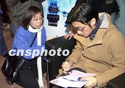 圖:歌星謝霆鋒為女記者簽名 2002年01月24日 19:04 ![]() 歌星謝霆鋒24日在香港舉行最新廣東話專輯“ME”發(fā)布會(huì),除吸引大批傳媒采訪之外,更使女記者要求霆鋒在新專輯“ME”封套上簽名。中新社傳真 鄧慶樂 攝 |