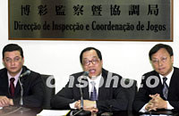 圖:澳門(mén)博彩競(jìng)投委員會(huì)新聞發(fā)布會(huì) 2002年02月01日 20:37 ![]() 澳門(mén)博彩競(jìng)投委員會(huì)主席譚伯源三十一日在新聞發(fā)布會(huì)上介紹,參加競(jìng)投且具備資格的十八家公司,至今尚沒(méi)有一家重組成功。中新社圖 宗金柱 攝