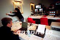 圖:采訪布什訪華的美國(guó)記者在京安營(yíng)扎寨 2002年02月20日 14:29 ![]() 二十日,專程來(lái)京采訪美國(guó)布什總統(tǒng)訪華的美國(guó)電視聯(lián)合記者采訪團(tuán)(US TV POOL),已在北京香格里拉飯店安營(yíng)扎寨。中新社記者 史利 攝