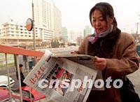 圖:北京市民關(guān)注布什訪華 2002年02月20日 18:41 ![]() 一位從北京香格里拉飯店前匆匆而過(guò)的市民,正在專心地閱讀有關(guān)布什訪華的消息。設(shè)在該飯店內(nèi)的白宮新聞發(fā)布廳和中方新聞中心已于今日啟動(dòng)。中新社圖 張宇 攝