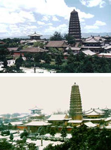 新聞背景知識:阿育王寺和中國的法門寺 2002年02月20日 20:03 ![]() 不同季節(jié)的法門寺 中新網(wǎng)北京2月20日消息:釋迦牟尼佛在世時,信眾就對佛身體上任何部分都視為圣物。佛涅槃后,周邊八個小國的國王曾率軍隊爭奪舍利,后被一個香姓婆羅門勸解,并主持將舍利分成八份,各自請回供奉。 釋迦牟尼佛涅槃后一百多年,古印度有個國王叫阿育王的崇信佛教,曾廣泛建立佛塔以供奉佛舍利。人們將這些塔統(tǒng)稱為阿育王塔。 據(jù)隋《歷代三寶記》、唐《破邪論》等佛典記載古印度阿育王曾在很大的地域范圍內(nèi)建筑佛舍利塔。據(jù)傳中國境內(nèi)有十九處,都稱中國江漢左右、關(guān)隴西東有阿育王塔。扶風阿育王塔即為其一。法門寺初建于東漢年間,先有佛塔后建佛寺,所以最初便因阿育王塔而名阿育王寺,后唐高祖李淵賜名法門寺。 唐代法門寺寶塔為四級木塔,明代隆慶年間(公元1567—1572年)唐代木塔崩塌。明神宗萬歷七年至三十七年(1579—1609)重建八角十三級磚塔一座,塔高四十七米。一九八一年八月二十四日在邊綿霪雨中明代磚塔塔身自上而下崩塌一半。 一九八六年十月,文物部門決定撥款重修寶塔。一九八七年四月在清理塔基時,發(fā)現(xiàn)唐代地宮并出土佛指舍利和大量唐代稀世珍寶。唐朝幾代帝王都曾予以修葺。懿宗時又加以擴建。地宮全長21.12m,面積為31.84m2。整個地宮由踏步臺階、平臺、甬道、前室、中室、后室、秘龕七部分組成,以五道石門相隔。這個地宮曾得到唐王朝歷代皇帝的重視,給予多次修葺。
