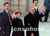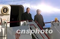 組圖:美國(guó)總統(tǒng)布什抵達(dá)北京 2002年02月21日 11:10 ![]() 美國(guó)總統(tǒng)布什乘坐的“空軍一號(hào)”二十一日上午降落在北京首都國(guó)際機(jī)場(chǎng)。中新社記者 毛建軍 攝 ![]() 美國(guó)總統(tǒng)布什與夫人二十一日上午乘專(zhuān)機(jī)抵達(dá)北京首都國(guó)際機(jī)場(chǎng),開(kāi)始為期兩天的工作訪(fǎng)問(wèn)。中新社圖 毛建軍 攝