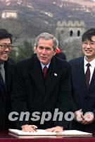 圖:布什總統(tǒng)登八達(dá)嶺長城題寫“Best wishes” 2002年02月22日 16:09 ![]() 美國總統(tǒng)布什二十二日登上北京八達(dá)嶺長城后,題寫美好祝愿:“Peace to our people”、“Best wishes”。中新社記者 毛建軍 攝