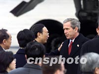 圖:駐美大使楊潔篪為布什送行 2002年02月22日 18:30 ![]() 美國總統(tǒng)布什二十二日下午結束對中國為期兩天的工作訪問后,乘專機離開北京。中國駐美大使楊潔篪等前往機場送行。中新社記者 滿會喬 攝