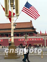 圖:中美國(guó)旗招展天安門(mén)引市民關(guān)注 2002年02月22日 18:36 ![]() 美國(guó)總統(tǒng)布什訪華第二日,天安門(mén)廣場(chǎng)中美國(guó)旗在陽(yáng)光下招展飄揚(yáng),金水橋邊車(chē)水馬龍,一些游人以中美國(guó)旗為背景照相留影。許多市民對(duì)布什昨天關(guān)于“中美關(guān)系搞好了對(duì)世界都有益”的表述十分贊賞。中新社記者 王麗南 攝