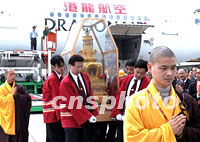圖:法門寺佛指舍利抵達臺北機場 2002年02月23日 19:20 ![]() 法門寺佛指舍利二十三日下午抵達臺北機場。作者:中央社攝/中新社