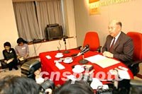 ![]() 香港2002年行政長官選舉候選人提名期28日下午結(jié)束,選舉主任彭鍵基法官隨即宣布董建華為香港特區(qū)第二任行政長官候任人。中新社圖 洪少葵 攝
