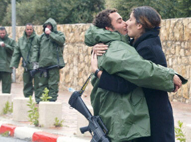 圖:以色列士兵與女友分別前相擁而吻 2002年04月03日 14:17 圖為色列士兵與女友相擁而吻 起火的教堂 在耶路撒冷市和西岸城市伯利恒之間地一處檢查站,一名以色列士兵與女友相擁而吻。以軍進入了古城伯利恒,并向教堂開火,一名神父被殺,另外六名修女受傷。法新圖