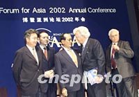 圖:博鰲亞洲論壇理事會(huì)當(dāng)選成員與媒體見(jiàn)面 2002年04月11日 19:34 ![]() 菲律賓前總統(tǒng)拉莫斯(左三)、澳大利亞前總理霍克(左四)等博鰲亞洲論壇理事會(huì)當(dāng)選成員十一日在博鰲出席與媒體見(jiàn)面會(huì)。中新社記者 滿會(huì)喬 攝