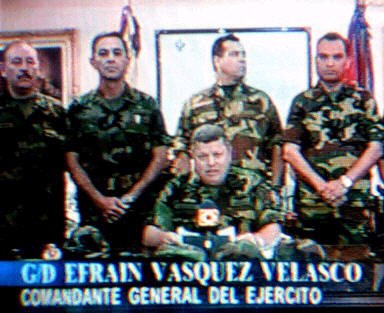 多圖:委內(nèi)瑞拉高級(jí)將領(lǐng)發(fā)表電視講話加入叛軍 2002年04月12日 12:22 ![]() 委內(nèi)瑞拉當(dāng)?shù)貢r(shí)間4月11日晚(北京時(shí)間12日上午),國民警衛(wèi)隊(duì)的卡伊魯茲將軍宣布,總統(tǒng)查韋斯的政府已經(jīng)"不再履行其職能",全國局勢已經(jīng)被軍隊(duì)控制。此前已有多名高級(jí)軍官宣布不承認(rèn)總統(tǒng)查韋斯,并要求其下臺(tái)。圖為委內(nèi)瑞拉軍隊(duì)司(中).(春風(fēng))