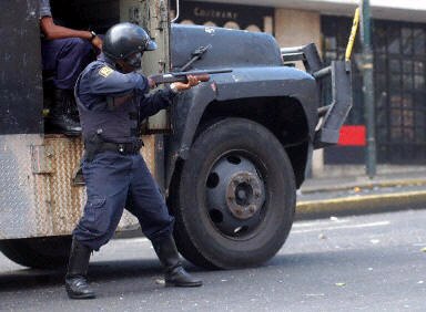 ![]() 委內(nèi)瑞拉當(dāng)?shù)貢r(shí)間4月11日晚(北京時(shí)間12日上午),國民警衛(wèi)隊(duì)的卡伊魯茲將軍宣布,總統(tǒng)查韋斯的政府已經(jīng)“不再履行其職能”,全國局勢已經(jīng)被軍隊(duì)控制。此前,委內(nèi)瑞拉發(fā)生數(shù)十萬人罷工,群眾要求查韋斯辭職。他們與警察、國民警衛(wèi)隊(duì)以及總統(tǒng)的支持者發(fā)生了激烈沖突,至少已導(dǎo)致12人死亡,96人受傷。圖為騷亂中一名國民警衛(wèi)隊(duì)員躲在車后準(zhǔn)備射擊。(春風(fēng))