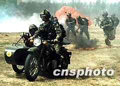 圖:空降兵特種部隊(duì)進(jìn)行偵打綜合演練 2002年04月15日 10:44 ![]() 解放軍空軍空降兵特種分隊(duì)四月進(jìn)行偵察打擊一體化綜合演練,著陸官兵快速向目標(biāo)沖擊。中新社記者 王麗南 攝