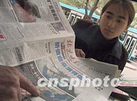 圖:北京市民關注國航客機墜機事件 2002年04月15日 16:50 ![]() 一位北京市民十五日下午正在街頭報亭購買當日晚報,了解中國國際航空公司一架波音767客機在韓國釜山機場附近墜毀的相關消息。中新社記者 張勤 攝