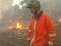圖:中國國際航空公司客機失事現(xiàn)場的救援工作 2002年04月15日 19:42 ![]() 四月十五日上午十一時許,中國國際航空公司一架波音767客機在朝鮮釜山機場附近山上墜毀,救援人員在失事現(xiàn)場滅火救人。