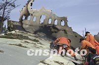圖:韓國(guó)有關(guān)人員在飛機(jī)殘骸中繼續(xù)搜尋 2002年04月17日 19:42 ![]() 17日,韓國(guó)有關(guān)人員在事故現(xiàn)場(chǎng)和飛機(jī)殘骸中繼續(xù)搜尋失蹤者。中新社記者 陶光雄 攝