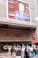 圖:香港時代廣場播發(fā)高官問責(zé)制情況 2002年04月18日 19:31 ![]() 香港特區(qū)行政長官董建華四月十七日下午在立法會解釋有關(guān)高官問責(zé)制的情況。圖為大屏幕播出的有關(guān)新聞吸引了市民。中新社記者 任海霞 攝