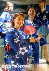 中新網(wǎng)東京4月24日消息:隨著世界杯日益臨近,18日在東京的東武百貨店池袋分店發(fā)售了限量生產(chǎn)的印有足球圖案的浴衣(夏天穿的一種和服)。這幾年穿著浴衣逛街的年輕人多了起來,該店的宣傳稱:“希望大家穿著它去觀看球賽”。 據(jù)“共同社”報道,該浴衣的型號只有M號,無論男女,價格為2萬2千日元。從發(fā)售當天起,就有球迷特意從靜岡趕來購買,反響很好,由于該浴衣限量生產(chǎn)100件,該店稱:“請在售謦之前購買”,挑逗消費者的心理。 本世界杯專稿版權歸中新網(wǎng)與TOM網(wǎng)站共同擁有。如需刊用,務經(jīng)雙方正式書面授權。