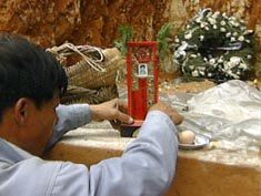 ![]() 在耶路撒冷爆炸中喪生的中國(guó)工人蔡獻(xiàn)陽(yáng)和林春美的遺體25日晚運(yùn)抵福建莆田死難者所在的村子,并分別于26日上午8時(shí)和下午1時(shí)在家人和親友的安排下各自舉行了遺體的安葬儀式。