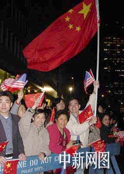 圖文特寫:華僑華人歡迎胡錦濤 點(diǎn)亮紐約"不夜城" 2002年04月29日 13:41 ![]() ![]() 中新社 趙海燕、陳建/攝 中新網(wǎng)紐約四月二十九日消息(記者陳建趙海燕)持續(xù)了一天的春雨使原本在周末就冷清的曼哈頓中城更顯得行人稀少。但二十八日黃昏時(shí)分當(dāng)曼哈頓漸漸進(jìn)入暮色的時(shí)候,卻開始出現(xiàn)了熱鬧的人群。 人群最終聚集在曼哈頓中城五十街與公園大道的交匯處,中國(guó)國(guó)家副主席胡錦濤今天凌晨抵達(dá)紐約訪問下榻在位于這里的華爾道夫酒店。華僑華人熱烈的行動(dòng)與熱情的標(biāo)語(yǔ)使這里成為“不夜城”紐約午夜的最亮點(diǎn)。 二十八日晚上十點(diǎn)多鐘的時(shí)候,雨已經(jīng)停了,但氣溫剛剛超過攝氏十度,站在華爾道夫酒店外以及對(duì)面和側(cè)面的人行道上的華僑華人還是越來(lái)越多。他們將帶來(lái)的橫幅幾個(gè)人共同高舉過頭頂,橫幅上寫“歡迎胡錦濤訪問美國(guó)”、“中美友好萬(wàn)歲”等。紐約已經(jīng)入夜,華僑華人特意用熒光效果制作的標(biāo)語(yǔ)顯得非常耀眼。 為了這次的迎接,紐約華僑華人已經(jīng)準(zhǔn)備了很長(zhǎng)時(shí)間。設(shè)計(jì)歡迎橫幅,設(shè)計(jì)歡迎隊(duì)伍,甚至設(shè)計(jì)紀(jì)念品。在他們拿到定制的歡迎橫幅時(shí)非常興奮,打電話通知朋友們來(lái)看,并準(zhǔn)備將橫幅掛在汽車上在紐約的中國(guó)城巡游一番。 前天,由中國(guó)的陳、胡、袁三姓氏華人組成的至孝篤親公所率先在會(huì)所掛起了五星紅旗以及歡迎胡錦濤訪美的大幅標(biāo)語(yǔ),并將胡錦濤稱為“宗長(zhǎng)”。中美友好協(xié)會(huì)等團(tuán)體還在報(bào)紙上刊登了歡迎胡錦濤訪美的恭和廣告。中國(guó)旅美科協(xié)發(fā)表公開信敦促美國(guó)恪守中美三個(gè)聯(lián)合公報(bào)的承諾,堅(jiān)信胡錦濤訪美必將促進(jìn)中美兩國(guó)在各領(lǐng)域的交流合作。美國(guó)江浙工商總會(huì)特別設(shè)計(jì)制作了紀(jì)念帽準(zhǔn)備送給胡錦濤副主席,從昨晚開始他們站在歡迎隊(duì)伍中,每個(gè)會(huì)員都頭戴一頂紀(jì)念帽,非常引人注目。 當(dāng)人們估計(jì)胡錦濤乘坐的汽車就要到達(dá)酒店的時(shí)候,歡迎人群開始出現(xiàn)更加熱烈的氣氛。有些華僑華人高聲唱起了中國(guó)國(guó)歌以及五星紅旗高高飄揚(yáng)、團(tuán)結(jié)就是力量等歌曲,手舉橫幅的人開始有節(jié)奏地抖動(dòng)橫幅,人們從不同的角度注視著華爾道夫酒店。這家具有悠久歷史的紐約著名酒店曾多次接待包括中國(guó)在內(nèi)的世界各國(guó)的著名人物。 胡錦濤訪美之行受到各界的關(guān)注。二十七日胡錦濤結(jié)束對(duì)馬來(lái)西亞和新加坡訪問后抵達(dá)美國(guó)夏威夷,繼續(xù)訪美。傳媒即將焦點(diǎn)對(duì)準(zhǔn)胡錦濤,美聯(lián)社、CNN、BBC等英文媒體都給以圖文報(bào)道,當(dāng)?shù)厝A文媒體更用一版大部分版面報(bào)道有關(guān)內(nèi)容,不少華文報(bào)紙還開設(shè)相關(guān)專欄詳細(xì)報(bào)道。 二十七日在夏威夷,胡錦濤發(fā)表機(jī)場(chǎng)講話明確表示了他此次訪美的目的:落實(shí)江澤民主席和布什總統(tǒng)北京會(huì)晤達(dá)成的共識(shí),加強(qiáng)中美高層接觸,增進(jìn)相互了解,推動(dòng)中美建設(shè)性合作關(guān)系向前發(fā)展。這也正是旅美華人所期待的。 歡迎的人群在凌晨一點(diǎn)才漸漸離去。胡錦濤將在今天專門安排時(shí)間再次與華僑華人和留學(xué)生代表見面。(完)
