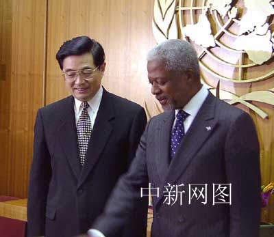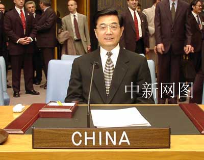 胡錦濤會(huì)見安南 雙方就中東等問題交換看法 2002年04月30日 13:44 ![]() 胡錦濤聯(lián)合國(guó)會(huì)晤安南。中新社記者 陳建 攝 ![]() 胡錦濤在聯(lián)合國(guó)安理會(huì)做“五秒鐘代表”。中新社記者 陳建 攝 ![]() 胡錦濤在聯(lián)合國(guó)副秘書長(zhǎng)陳健、中國(guó)