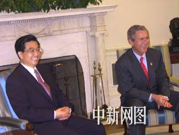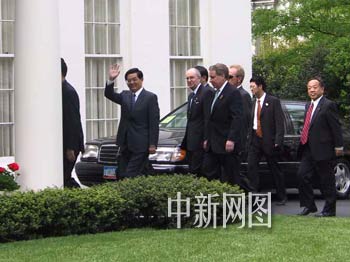 多圖:胡錦濤副主席與美國(guó)總統(tǒng)布什舉行會(huì)晤 2002年05月02日 08:48 ![]() 美國(guó)當(dāng)?shù)貢r(shí)間五月一日下午,美國(guó)總統(tǒng)布什在白宮會(huì)晤中國(guó)國(guó)家副主席胡錦濤。中新社 徐德金/攝 ![]() 美國(guó)當(dāng)?shù)貢r(shí)間五月一日下午,中國(guó)國(guó)家副主席胡錦濤在白宮與美國(guó)總統(tǒng)布什舉行會(huì)晤。圖為胡錦濤、布什微笑面對(duì)攝影記者短暫拍照。中新社 徐德金/攝 ![]() 美國(guó)當(dāng)?shù)貢r(shí)間五月一日上午,中國(guó)國(guó)家副主席胡錦濤與美國(guó)副總統(tǒng)切尼舉行會(huì)談。圖為胡副主席抵達(dá)白宮時(shí)向守候的記者揮手致意。中新社 徐德金/攝 中新網(wǎng)華盛頓五月一日電(記者徐德金)美國(guó)當(dāng)?shù)貢r(shí)間五月一日下午,中國(guó)國(guó)家副主席胡錦濤與美國(guó)總統(tǒng)布什舉行會(huì)晤。 會(huì)晤在白宮橢圓型辦公室舉行。在開(kāi)放給媒體攝影記者短暫拍照時(shí),布什、胡錦濤滿面微笑、頻頻握手,布什還風(fēng)趣地對(duì)記者說(shuō),“再拍一張”。 五月一日上午,胡錦濤與切尼副總統(tǒng)在白宮舉行了會(huì)談。胡副主席是應(yīng)切尼副總統(tǒng)的邀請(qǐng)?jiān)L問(wèn)美國(guó)的。 下午,胡錦濤還會(huì)晤了美國(guó)總統(tǒng)國(guó)家安全顧問(wèn)賴(lài)斯。 今天,大批媒體記者守候在白宮,采訪胡錦濤副主席與美國(guó)領(lǐng)導(dǎo)人的會(huì)晤、會(huì)談。 胡錦濤副主席今天在五角大樓還會(huì)晤了美國(guó)國(guó)防部長(zhǎng)拉姆斯菲爾德。
