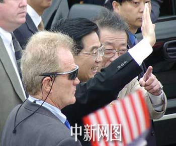 組圖:胡錦濤抵達(dá)舊金山 受華人華僑歡迎 2002年05月03日 09:48 ![]() 中國(guó)國(guó)家副主席胡錦濤一行五月二日中午抵達(dá)美國(guó)舊金山市。舊金山市黑人市長(zhǎng)布朗(左)到機(jī)場(chǎng)迎接胡錦濤和夫人來(lái)訪。中新社 陳建/攝 ![]() 二百多名當(dāng)?shù)厝A僑華人手舉中美兩國(guó)國(guó)旗,在機(jī)場(chǎng)熱情迎接胡錦濤的到來(lái)。胡錦濤與夫人劉永清在舊金山市市長(zhǎng)布朗(左)的陪同下,向歡迎人群揮手致意。中新社 陳建/攝 ![]() 胡錦濤走下專機(jī)舷梯后,并沒(méi)在美國(guó)保安的引導(dǎo)下直接上車,而是向相反方向,走近歡迎人群,高興地與僑胞們握手。中新社 陳建/攝 ![]() 中國(guó)國(guó)家副主席胡錦濤五月二日中午抵達(dá)美國(guó)舊金山市。圖為胡錦濤副主席向歡迎人群揮手致意。中新社 陳建/攝