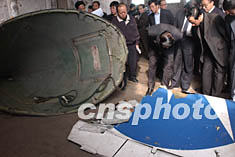 圖:有關(guān)人員認真處理北航失事客機的殘骸 2002年05月08日 18:24 ![]() 中國北方航空公司一架客機5.7日晚21時24分在大連海域失事。圖為有關(guān)人員認真處理打撈上來的飛機殘骸。中新社記者 錢興強 攝