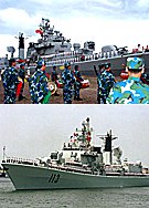 中國艦艇編隊環(huán)球首航 2002年05月16日 08:30 ![]() 由“青島”號導(dǎo)彈驅(qū)逐艦和“太倉”號綜合補(bǔ)給艦組成的中國海軍艦艇編隊,5月15日上午從青島軍港啟程,首次進(jìn)行環(huán)球航行。張全躍 攝
