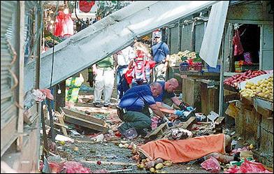 以色列內(nèi)坦亞爆炸3人死亡 以軍開進(jìn)拉馬拉 2002年05月20日 08:08 ![]() 以色列北部海濱城市內(nèi)坦亞市中心的一個集貿(mào)市場發(fā)生自殺式炸彈爆炸。(法新圖) 中新網(wǎng)北京5月20日消息:耶路撒冷訊,以色列北部海濱城市內(nèi)坦亞19日下午發(fā)生的自殺式炸彈爆炸中,死亡人數(shù)目前已經(jīng)上升至3人,另外還有至少50人受傷,其中8人傷勢嚴(yán)重。 以色列電視臺報道說,爆炸發(fā)生在當(dāng)?shù)貢r間16時25分前后(北京時間21時25分),爆炸地點(diǎn)為內(nèi)坦亞市中心的集貿(mào)市場。巴勒斯坦激進(jìn)組織哈馬斯已經(jīng)宣布對此次襲擊負(fù)責(zé)。 美聯(lián)社報道說,這名發(fā)動自殺式炸彈襲擊的巴勒斯坦人身穿著以色列陸軍軍服,于周日混入內(nèi)坦亞市中心的一個集貿(mào)市場。 幾個小時后,巴勒斯坦目擊者稱,一些以軍坦克開進(jìn)了西岸城市拉馬拉。而以軍發(fā)言人則稱,開進(jìn)拉馬拉的只是幾輛裝甲運(yùn)兵車而非坦克。這些部隊短時間內(nèi)即撤出了該城市,沒有傷及巴勒斯坦人。