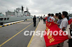 中新社北京五月二十三日電新加坡消息:今日上午十點(diǎn),美麗的“花園島國(guó)”新加坡,披上節(jié)日盛裝,迎來(lái)了中國(guó)人民海軍第一支艦艇編隊(duì)——環(huán)球航行訪問(wèn)艦艇編隊(duì)。 新加坡海軍在樟宜港為中國(guó)艦艇編隊(duì)的到來(lái)舉行了隆重?zé)崃业臍g迎儀式,新加坡海軍艦隊(duì)副司令陳凱賀(TAN KAI HOE)上校和中國(guó)駐新大使張九桓、中資機(jī)構(gòu)、留學(xué)生及新各界人士到碼頭迎接。歡迎人群中拉起了“熱烈歡迎中國(guó)海軍艦艇編隊(duì)訪問(wèn)新加坡”的巨幅標(biāo)語(yǔ),上百面中國(guó)國(guó)旗在歡迎人群中揮舞成一片;中國(guó)使館女青年向總指揮丁一平獻(xiàn)花,陳凱賀上校致歡迎詞,丁一平將軍作了簡(jiǎn)短講話并與張九恒大使、陳凱賀上校共同接受了記者的采訪。 丁一平將軍在接受記者采訪時(shí)說(shuō),這是中國(guó)海軍艦艇編隊(duì)首次訪問(wèn)新加坡,作為中國(guó)人民和中國(guó)軍隊(duì)的友好使者,我們五百零六名官兵都感到非常高興。這次訪問(wèn),對(duì)加深兩國(guó)人民和軍隊(duì)之間的相互了解、增加信任、擴(kuò)大交流,發(fā)展友誼,進(jìn)一步促進(jìn)兩國(guó)人民、軍隊(duì)、特別是促進(jìn)兩國(guó)海軍關(guān)系的發(fā)展,有著非常重要的意義。訪問(wèn)期間,我們的官兵將親身感受新加坡人民和軍隊(duì)的友好情誼,同樣,新加坡人民和軍隊(duì)也將通過(guò)中國(guó)海軍,更多地了解到中國(guó)人民和中國(guó)軍隊(duì)。 新海軍艦隊(duì)副司令陳凱賀告訴記者,新海軍十分重視中新兩國(guó)海軍關(guān)系的發(fā)展,新海軍先后于九八、九九年分別派艦對(duì)上海和青島進(jìn)行了友好訪問(wèn)。這次中國(guó)海軍艦艇編隊(duì)來(lái)新加坡訪問(wèn),是我們期待已久的事,我們?yōu)橹袊?guó)海軍的來(lái)訪,精心安排了多方面的活動(dòng)。 據(jù)記者了解,訪問(wèn)樟宜港,是中國(guó)海軍艦艇編隊(duì)此次環(huán)球航行訪問(wèn)的第一站。該港位于新加坡北部,是新海軍最大的基地和海軍司令部所在地,港內(nèi)可?堪ê娇漳概炘趦(nèi)的多種艦船。中國(guó)艦艇編隊(duì)將在此訪問(wèn)三天,訪問(wèn)其間,相繼到港的還有泰國(guó)、德國(guó)軍艦。 歡迎儀式結(jié)束后,編隊(duì)總指揮丁一平在張九恒大使陪同下前往新國(guó)防部拜會(huì)了新海軍總長(zhǎng)(司令)呂德耀少將。參加歡迎儀式的中國(guó)駐新使館人員、華人華僑及留學(xué)生代表百余人登艦參觀,并與官兵們進(jìn)行了親切交談。 當(dāng)日下午,出訪官兵參觀了新海軍基地設(shè)施和戰(zhàn)術(shù)訓(xùn)練中心、軍艦等。晚上,新海軍為中國(guó)艦艇編隊(duì)官兵舉行了歡迎宴會(huì),新海軍參謀長(zhǎng)戴榮利準(zhǔn)將等高級(jí)官員出席。(完)