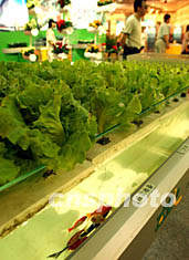 圖:魚菜共享的無土栽培 2002年05月24日 14:53 ![]() 綠油油的無土栽培蔬菜下面,培育液里養(yǎng)殖著食用魚。北京五月舉行的國際科技產(chǎn)業(yè)博覽會上,郊區(qū)農(nóng)業(yè)將廣泛推廣現(xiàn)代養(yǎng)殖技術(shù)。賈國榮 攝