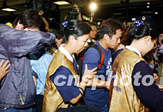 中新社記者現(xiàn)場報道:悲痛籠罩臺北機(jī)場(多圖) 2002年05月26日 11:14 ![]() 遇難乘客中5名香港旅客的19名家屬,26日0時30分抵達(dá)臺北桃園機(jī)場。中新社記者 任晨鳴 攝