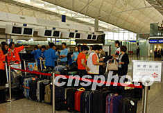 ![]() 五月二十六日,香港赴臺灣的旅游團沒有受華航失事影響,照常搭乘華航班機赴臺灣旅游。中新社記者 潘索菲 攝