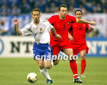 圖:日本球星中田英壽帶球突進(jìn) 2002年06月04日 22:25 ![]() 4日,世界杯足球賽上日本隊(duì)與比利時(shí)隊(duì)?wèi)?zhàn)平。圖為日本球星中田英壽帶球突進(jìn)。作者:cnsphoto