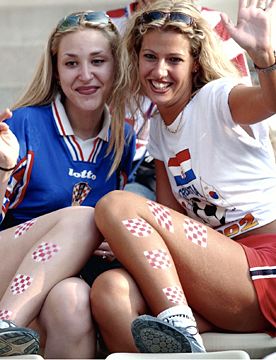 圖:意大利VS克羅地亞 性感女球迷場(chǎng)上助陣 2002年06月08日 17:04 ![]() 意大利VS克羅地亞性感女球迷場(chǎng)上助陣。共同社圖