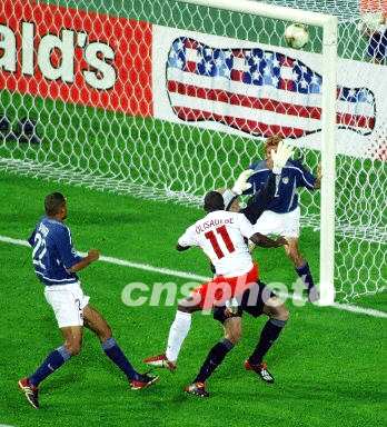 圖:波蘭2:0美國 奧利薩德貝進(jìn)球瞬間 2002年06月14日 20:06 ![]() 韓日世界杯D組波蘭隊(duì)與美國隊(duì)的比賽在韓國大田世界杯體育場(chǎng)進(jìn)行,目前比賽正在進(jìn)行,場(chǎng)上比分為波蘭隊(duì)2-0領(lǐng)先,11號(hào)奧利薩德貝為波蘭隊(duì)先入一球,9號(hào)克里扎洛維茨攻入第二球。圖為奧利薩德貝進(jìn)球瞬間。