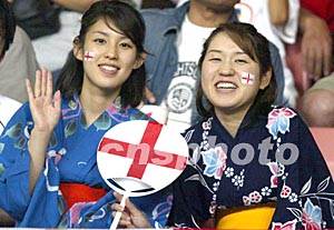 圖:日本女球迷為英格蘭隊(duì)助威 2002年06月15日 22:52 ![]() 世界杯足球賽八分之一決賽十五日在日本新瀉開賽,英格蘭隊(duì)(白衣)以三比零大勝丹麥而進(jìn)入八強(qiáng)。圖為身穿和服的日本女球迷為英格蘭隊(duì)助威。作者:毛建軍