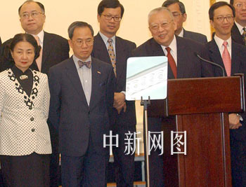 組圖:香港特首董建華與“新內(nèi)閣”拍攝全家福 2002年06月24日 12:36 ![]() 董建華與“新內(nèi)閣”拍攝全家福。香港特首董建華6月24日在香港禮賓府宣布二十一名“新內(nèi)閣”成員名單后,與將肩負(fù)重任的高官拍攝全家福。中新社傳真任晨鳴攝 ![]() 董建華宣布“新內(nèi)閣”名單。香港特首董建華6月24日在香港禮賓府宣布二十一名“新內(nèi)閣”成員名單。中新社傳真洪少葵攝 ![]() 曾蔭權(quán)梁錦松梁愛詩(shī)繼續(xù)輔佐董建華。香港特首董建華6月24日在香港禮賓府宣布二十一名“新內(nèi)閣”成員名單,原來的三位司長(zhǎng):政務(wù)司司長(zhǎng)曾蔭權(quán)、財(cái)政司司長(zhǎng)梁錦松、律政司司長(zhǎng)梁愛詩(shī)留任。中新社傳真洪少葵攝