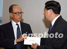 李嘉誠贊香港特區(qū)“問責(zé)制”新班子非常好(圖) 2002年06月26日 08:50 ![]() 香港首富、長江實業(yè)集團(tuán)主席李嘉誠,6月25日在香港將一千萬港元支票交與中聯(lián)辦主任姜恩柱,以救濟(jì)今夏中國大陸遭受嚴(yán)重水災(zāi)的地區(qū)民眾。中新社記者 任晨鳴 攝