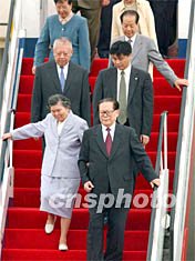 ![]() 中國國家主席江澤民6月30日下午乘專機抵達香港,出席香港回歸祖國五周年大會暨香港特區(qū)第二屆政府就職典禮活動,江主席高興地向歡迎人群揮手致意。任晨鳴 攝
