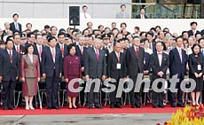 圖文特寫:迎接“大日子” 天空為香港升旗放晴 2002年07月01日 10:45 ![]() ![]() 香港舉行升旗儀式慶;貧w五周年。七月一日,香港金紫荊廣場舉行隆重的升旗儀式,慶祝特區(qū)政府成立五周年。中新社傳真 潘索菲 攝 中新社香港七月一日電(記者徐足之)喜看今日香港城中,正是五星紅旗和紫荊旗的天下!今天是香港特區(qū)成立五周年紀念日,也是第二屆特區(qū)政府宣誓就職日,香港用莊嚴的升旗儀式,迎接這個特別日子的到來。 早上八點整,香港會議展覽中心金紫荊廣場,升旗儀式在洪亮的國歌聲中進入高潮,八百名嘉賓肅穆而立,目送中華人民共和國國旗和香港特別行政區(qū)區(qū)旗(紫荊旗)同時迎風飄揚而起。站在最前排的特首董建華、全國政協(xié)副主席霍英東、中聯(lián)辦主任姜恩柱,放聲唱起了國歌。 今天早晨重復了五年前難忘的一幕:大雨如注。但天公作美,升旗前后四十分鐘內(nèi),天空放晴,升旗結(jié)束才十分鐘,大雨又自天而降。一位講英語的西方記者興奮地說,五年前的今天早晨,也是大雨傾盆,這是一個很有意思的巧合,給人留下深刻的印象。 升旗儀式由主持人廣播主持。董建華在升旗儀式后緊接著的新政府就職典禮上將宣誓就任第二任行政長官。所以,在升旗儀式過程中,董建華倍享尊榮,早上七時五十五分,主持人廣播“董建華進場了”,八時零五分儀式完畢,主持人廣播“恭請董建華第一個離場”。全場嘉賓和中外媒體的記者兩次將期待的目光聚焦在董建華身上。 除了穿西服的嘉賓外,香港各區(qū)民政事務局組織的市民,構(gòu)成升旗儀式上一道美麗的風景:他們穿特制的慶回歸五周年T恤,手上搖著的是繪有香港標志的小圓扇,握著的是書頁大小的國旗和香港區(qū)旗,兒童和青年人領(lǐng)囗下別著國旗和區(qū)旗的連體徽章。 站在最前面的市民,微笑著地回答一長排記者的提問,有的答為了準備看今天的升旗儀式,早晨四點多就起床了;有的答之所以要搶在最前面的位置,要在升旗儀式上看看。 今天是香港的公眾假日,大部分市民在家中收看直播實況,香港無線電視、亞洲電視、有線電視、香港電臺和商業(yè)電臺都對升旗儀式做了現(xiàn)場直播。一些市民大早走上街頭,在香港著名的海運大廈和時代廣場的戶外電視屏幕上觀看直播。