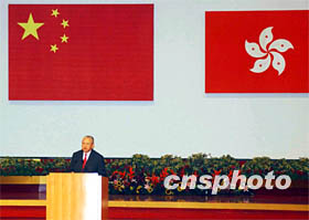 ![]() 7月1日上午,董建華宣誓就任香港特區(qū)第二屆政府行政長官后發(fā)表致辭。中新社傳真 任晨鳴 攝